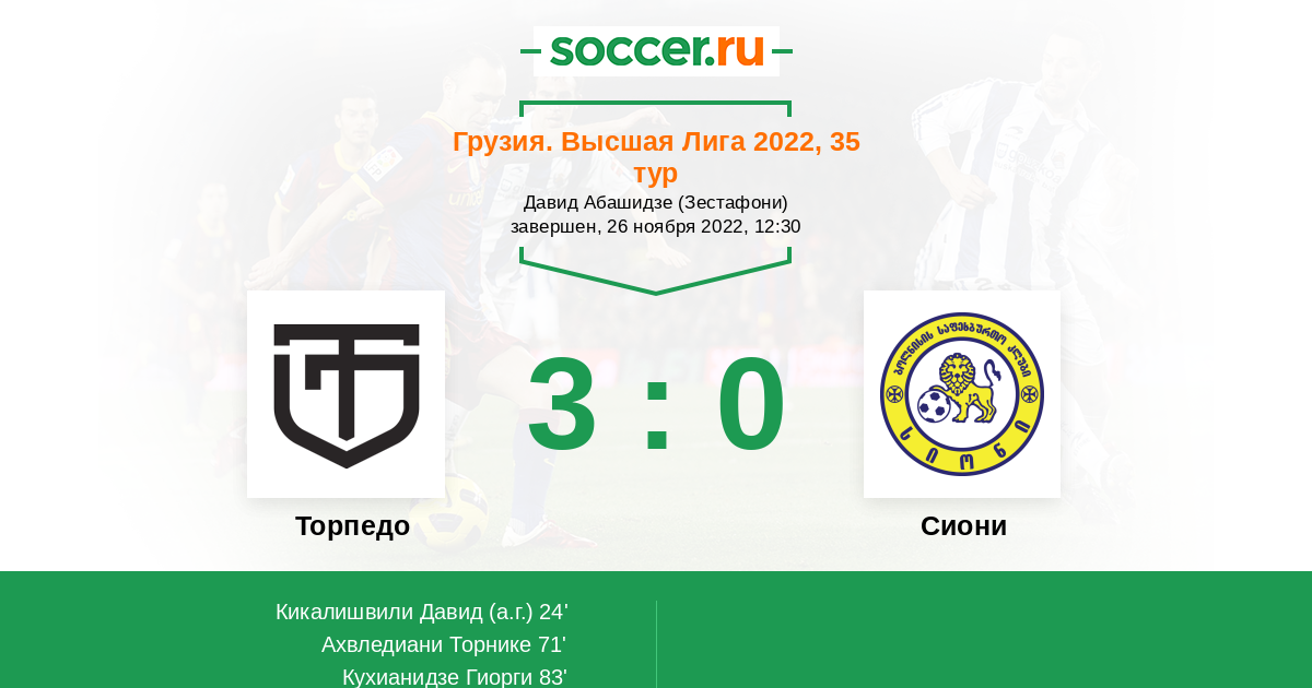 83' (3:0) Кухианидзе Гиорги (8) (Ахвледиани Торнике (29))