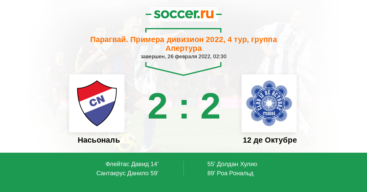 59' (2:1) Сантакрус Данило (10) (Бруэра Факундо (25))
