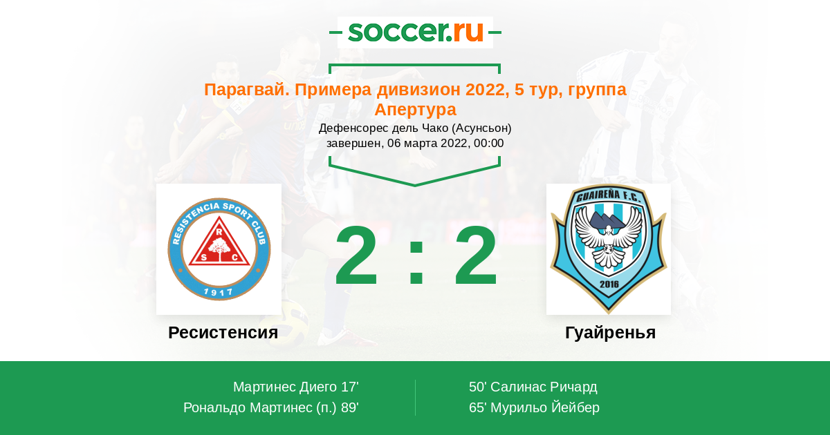 89' (2:2) Рональдо Мартинес (17)