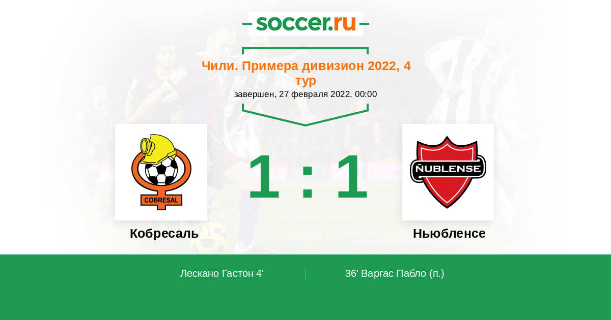 36' (1:1) Варгас Пабло (8)