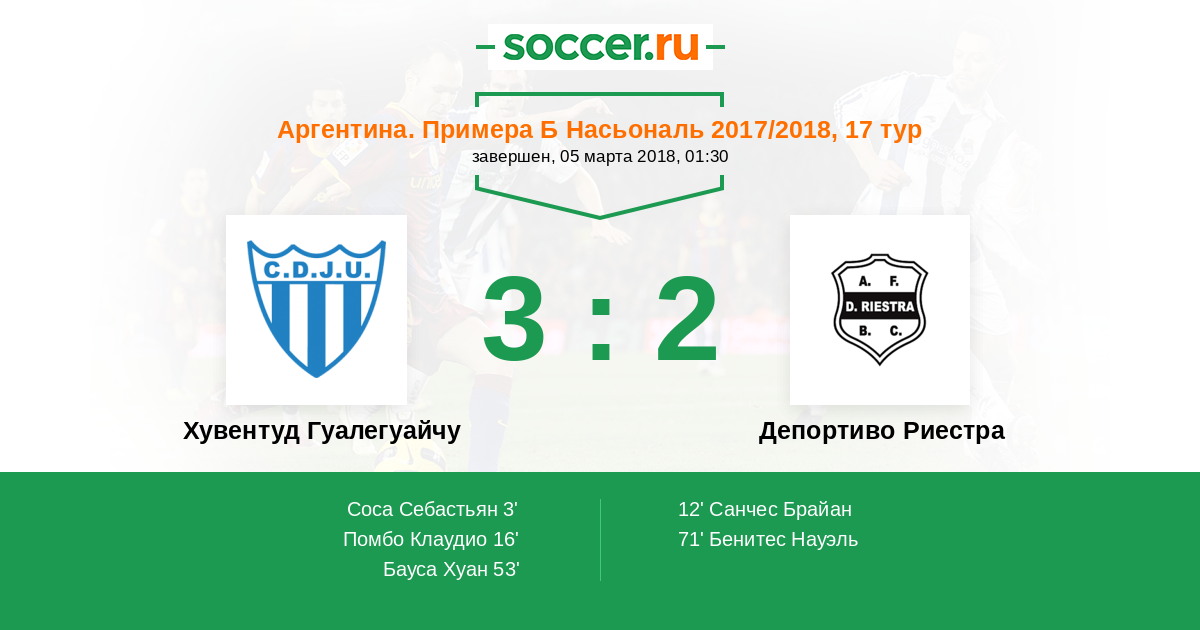 Хувентуд Гуалегуайчу - Депортиво Риестра