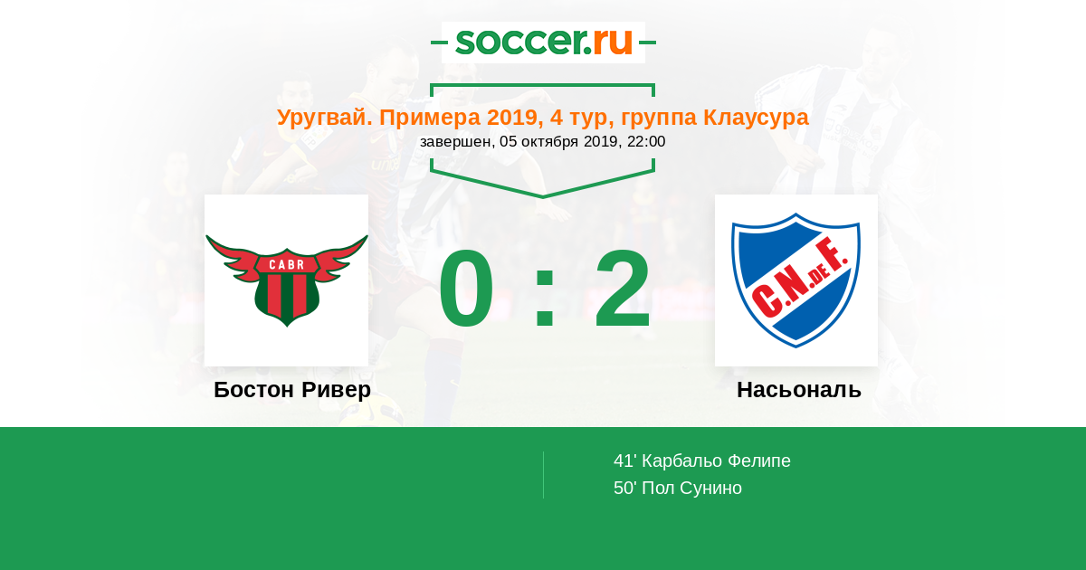 41' (0:1) Карбальо Фелипе (20)