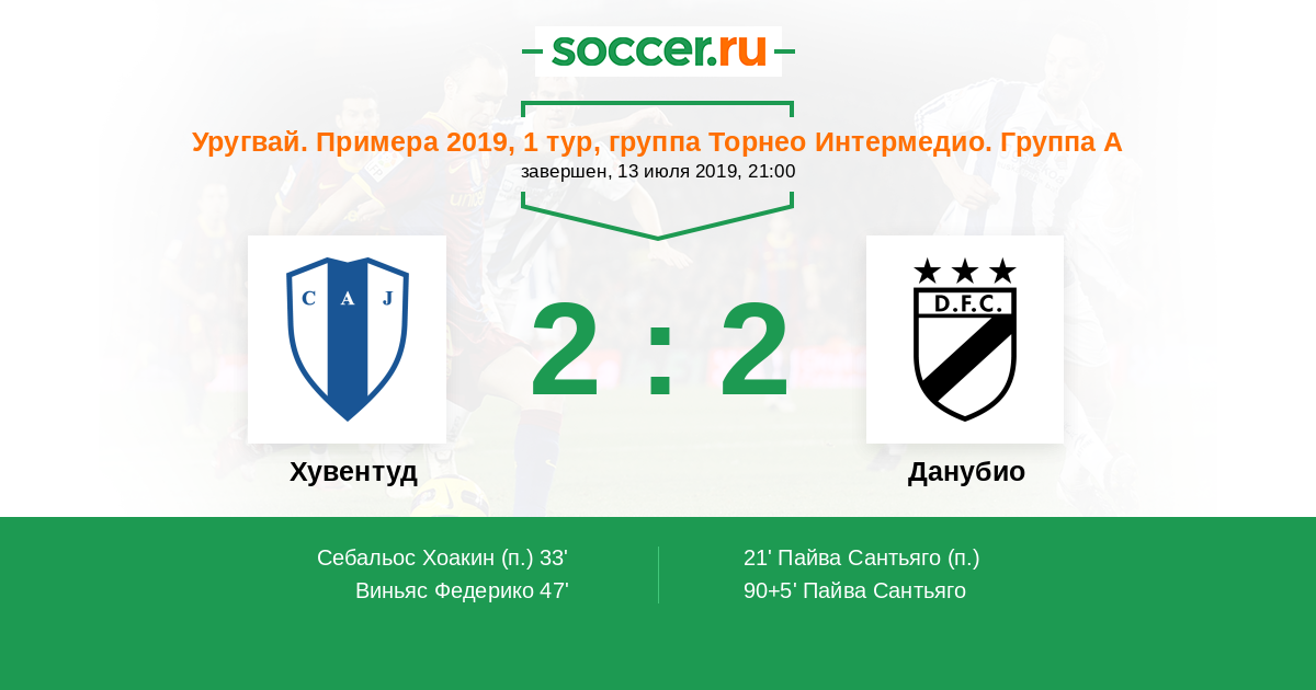 90+5' (2:2) Пайва Сантьяго (19)