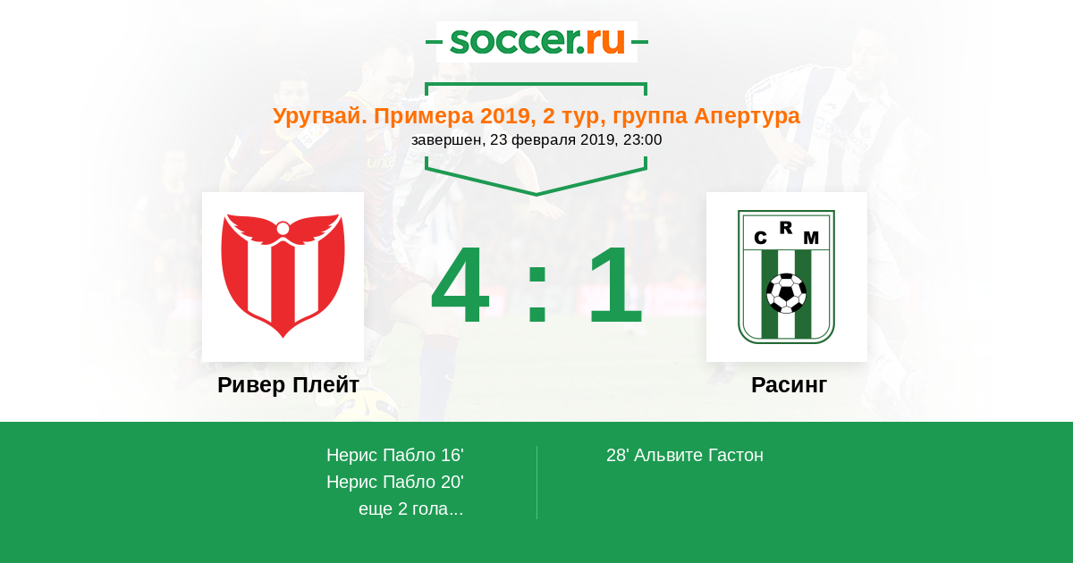 Запасные: 11 Хиньонос Либер (с 62'), 21 Родригес Леандро (с 62'), 20 Ортис Лукас (с 83'), 1 де Леон Мелиан Диего, 5 Барриос Мартин, 10 Эстол Мауро, 15 Перухо Хулиан
