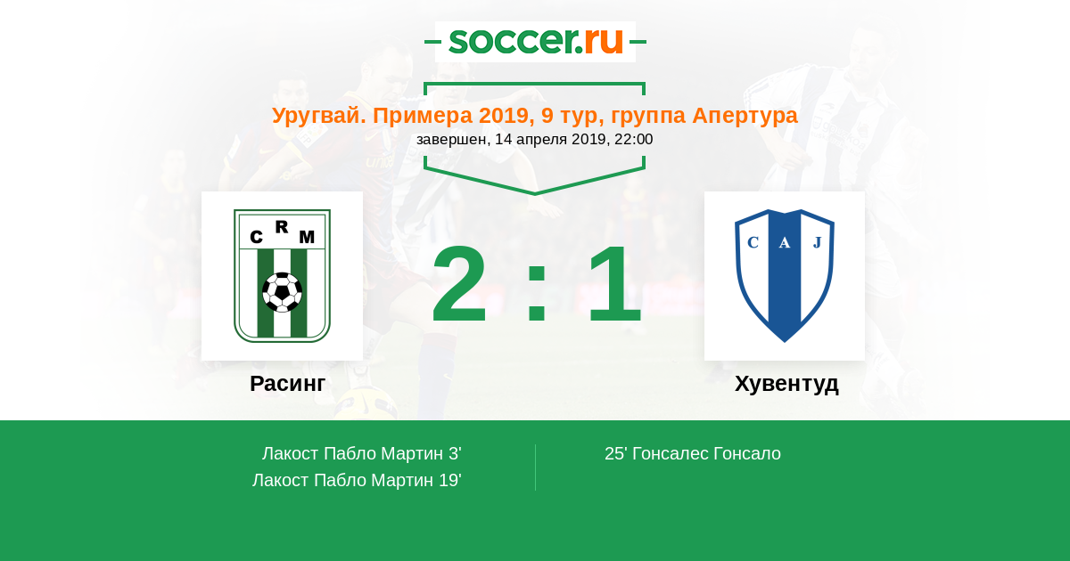 19' (2:0) Лакост Пабло Мартин (13)