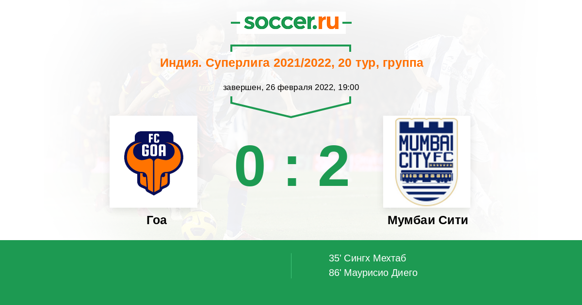 35' (0:1) Сингх Мехтаб (5) (Кассиньо (7))