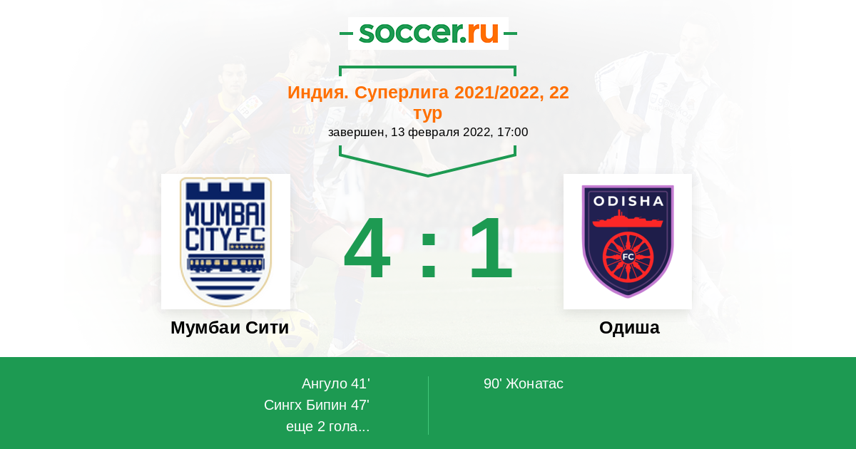 41' (1:0) Ангуло (17) (Бхеке Рахул (2))