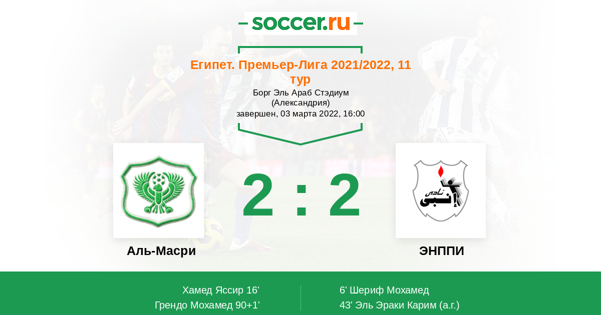 43' (1:2) Автогол Эль Эраки Карим (7)