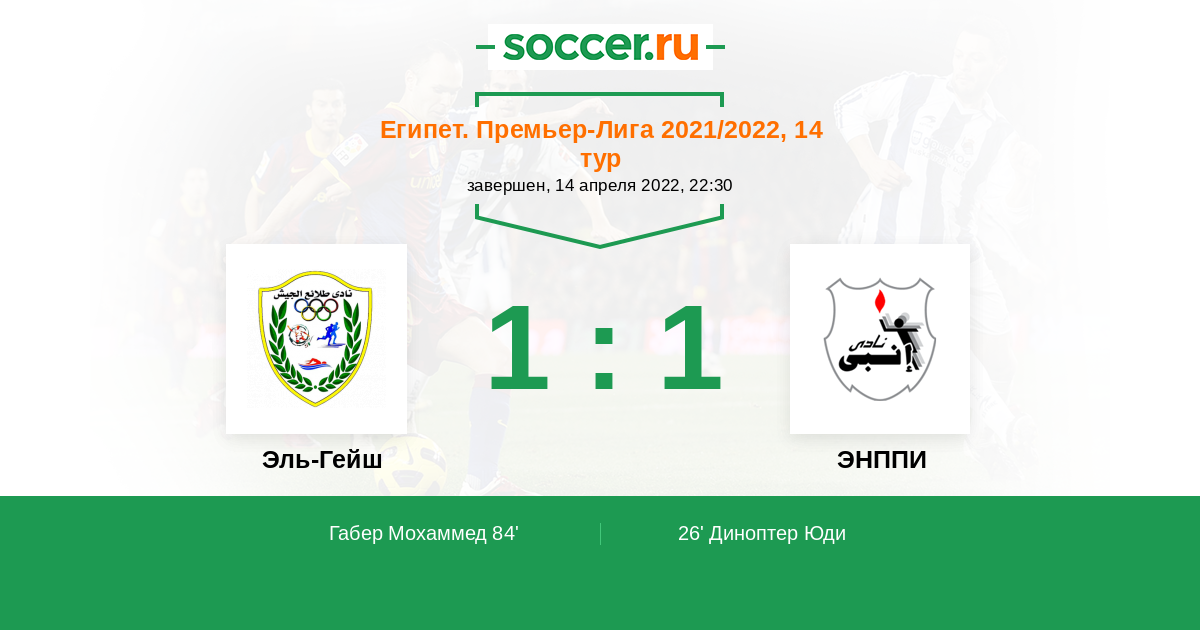84' (1:1) Габер Мохаммед (14) (Омран Регаб (4))
