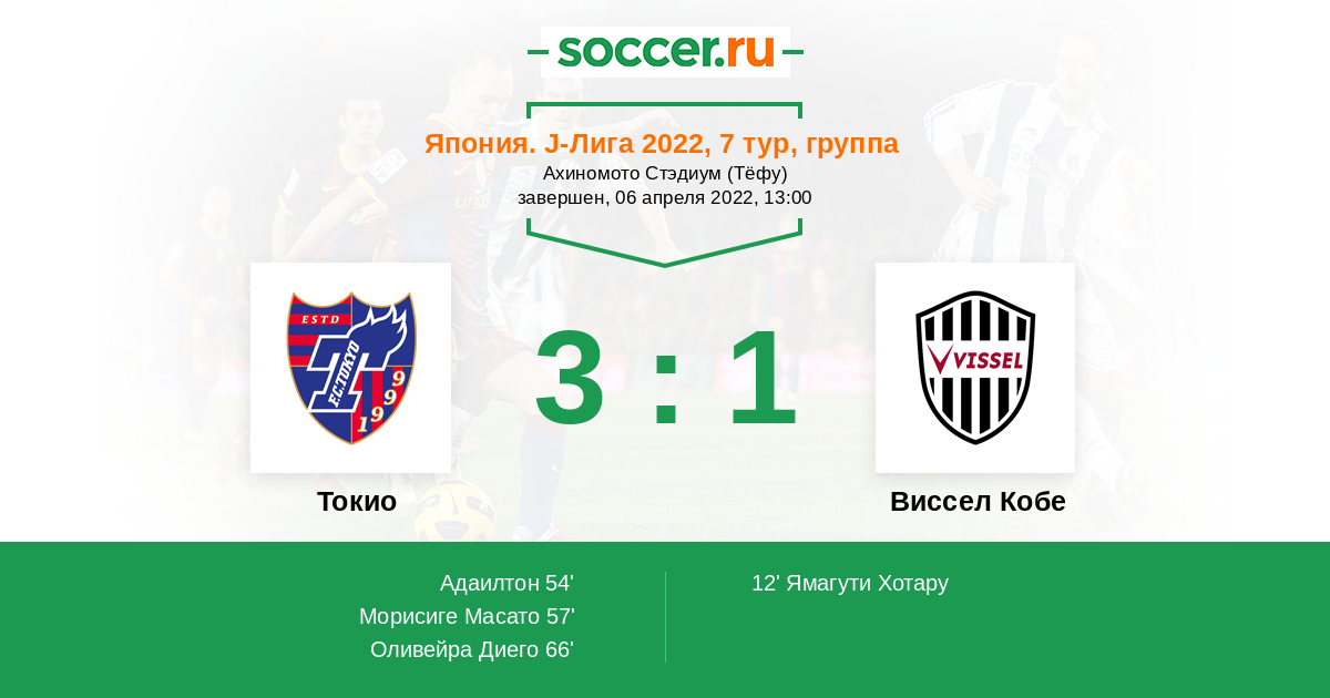 57' (2:1) Морисиге Масато (3) (Оливейра Диего (9))