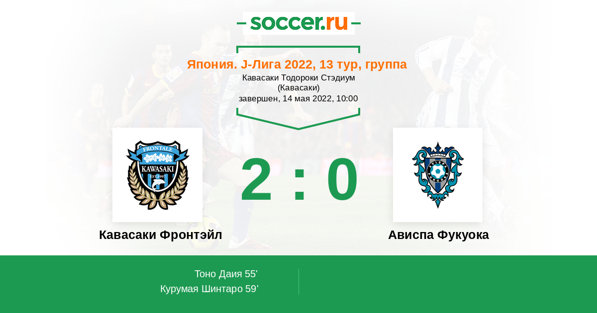 59' (2:0) Курумая Шинтаро (7) (Вакизака Ясуто (14))