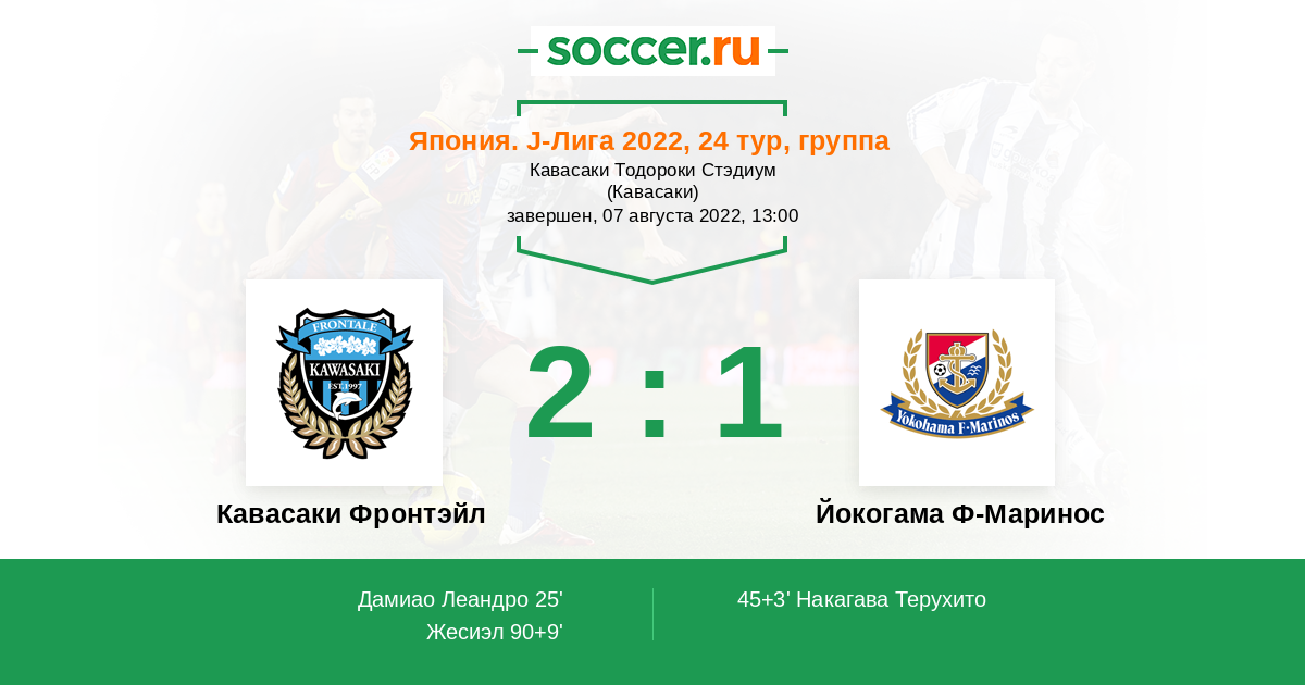 25' (1:0) Дамиао Леандро (9) (Ямане Мики (13))