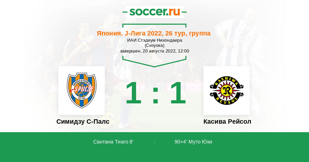8' (1:0) Сантана Тиаго (9) (Ямахара Реон (29))