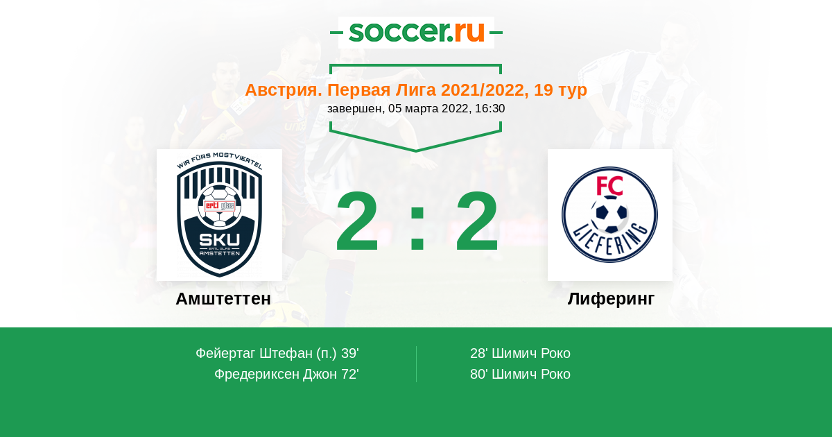 39' (1:1) Фейертаг Штефан (18)