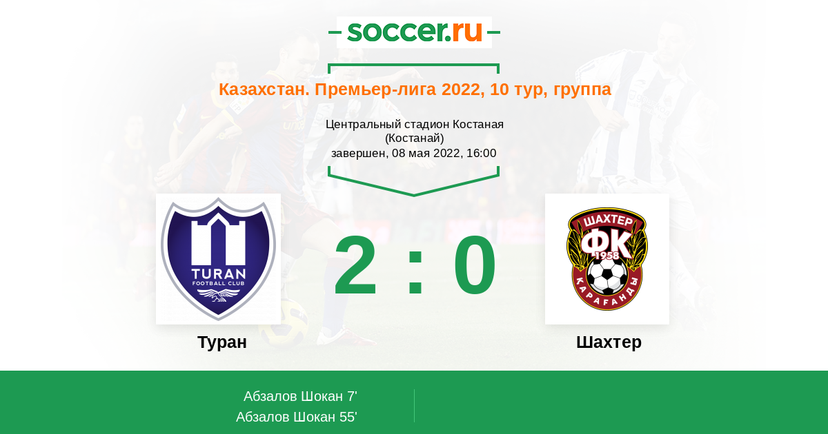 55' (2:0) Абзалов Шокан