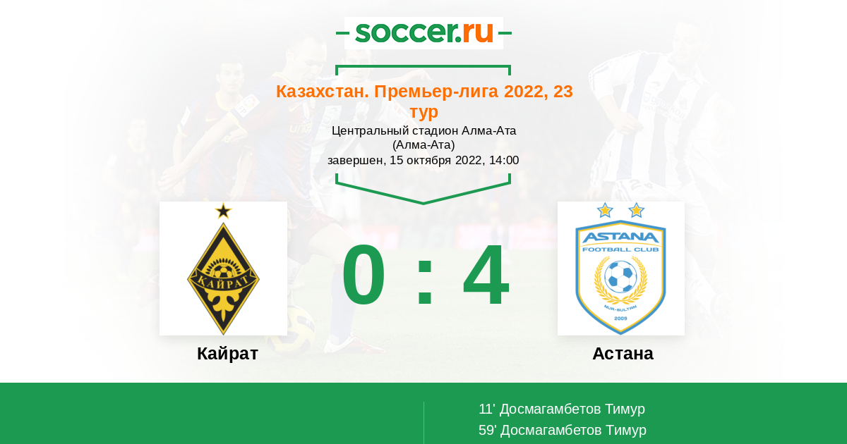 Запасные: Швырев Вячеслав (с 46'), Усенов Данияр (с 75'), Алыкулов Гулжигит (с 75'), Адахаджиев Адам, Касабулат Дамир, Ткаченко Егор, Кобеев Мирас, Кейлер Сергей (с 46'), Ульянов Вадим, Сейдахмет Еркебулан