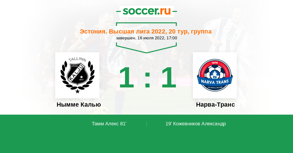 81' (1:1) Тамм Алекс (24) (Гусев Максим (21))