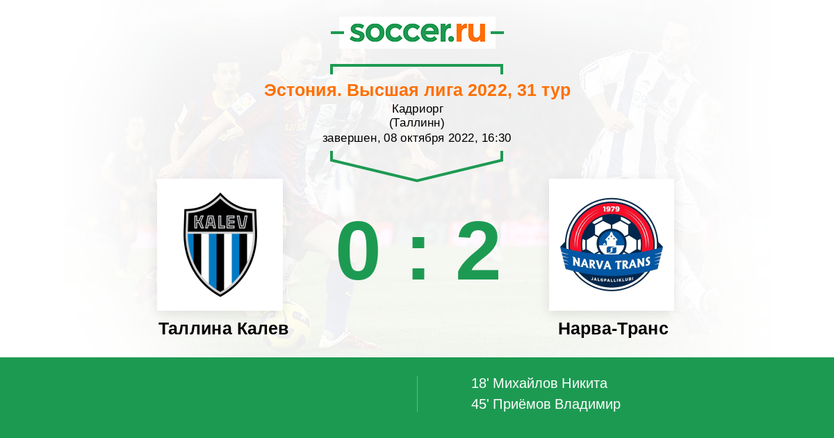 Запасные: 17 Шкинев Артем (с 59'), 99 Головлёв Эдуард (с 59'), 5 Нестеровски Роман (с 74'), 8 Демидов Евгений (с 86'), 9 Саар Райво (с 86'), 10 Закарлюка Александр, 69 Павлов Максим