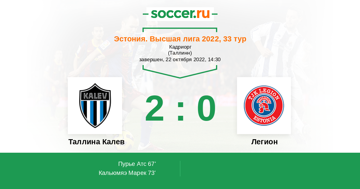 73' (2:0) Кальюмяэ Марек (26)