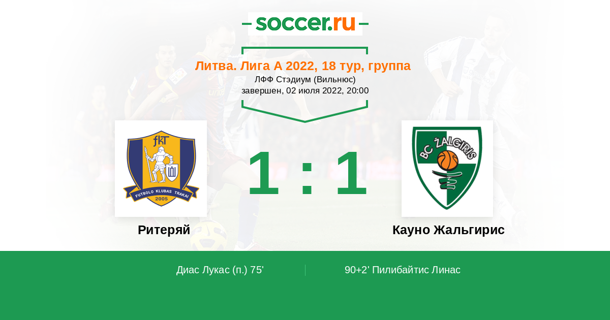 90+2' (1:1) Пилибайтис Линас (77) (Пежич Марко (3))