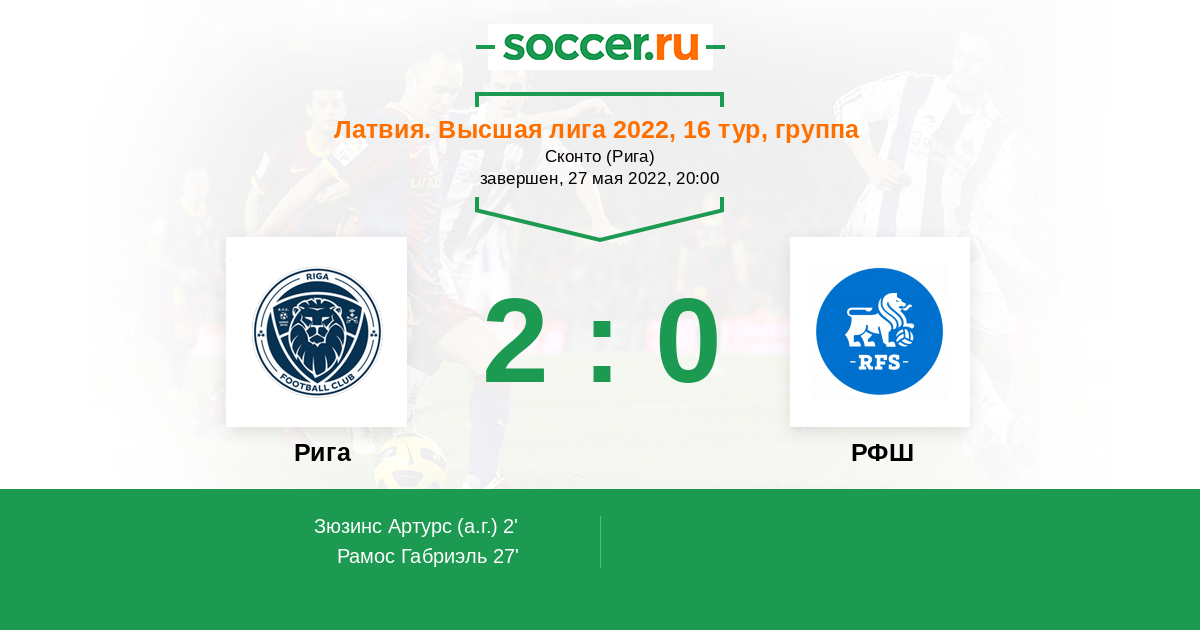 2' (1:0) Автогол Зюзинс Артурс (3)