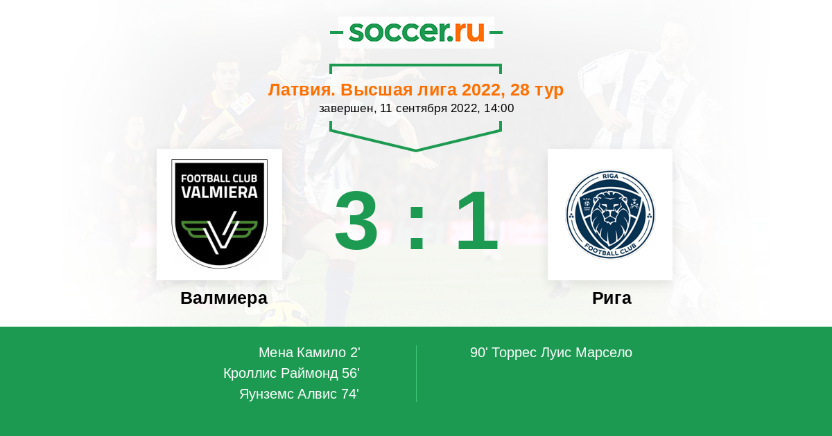 Запасные: 5 Пецос Танос (с 59'), 97 Торрес Луис Марсело (с 59'), 9 Петерсонс Армандс (с 79'), 19 Барнс Джозельфо (с 80'), 22 Коротковс Илья (с 87'), 3 Куракинс Антон, 8 Ругинс Ритварс, 16 Пуринс Нильс