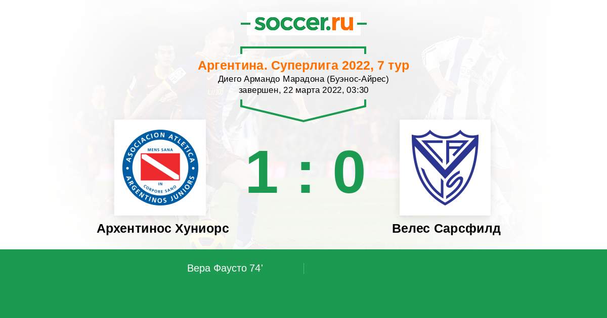 74' (1:0) Вера Фаусто (5) (Ренейро Гастон (32))