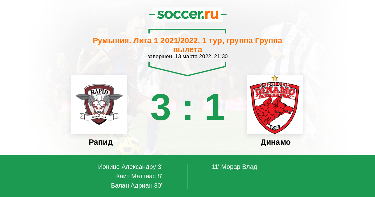 11' (2:1) Морар Влад (70) (Торже Габриэль (22))