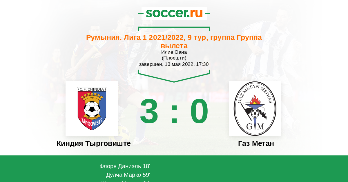 18' (1:0) Флоря Даниэль (11) (Сербан Андрей (77))