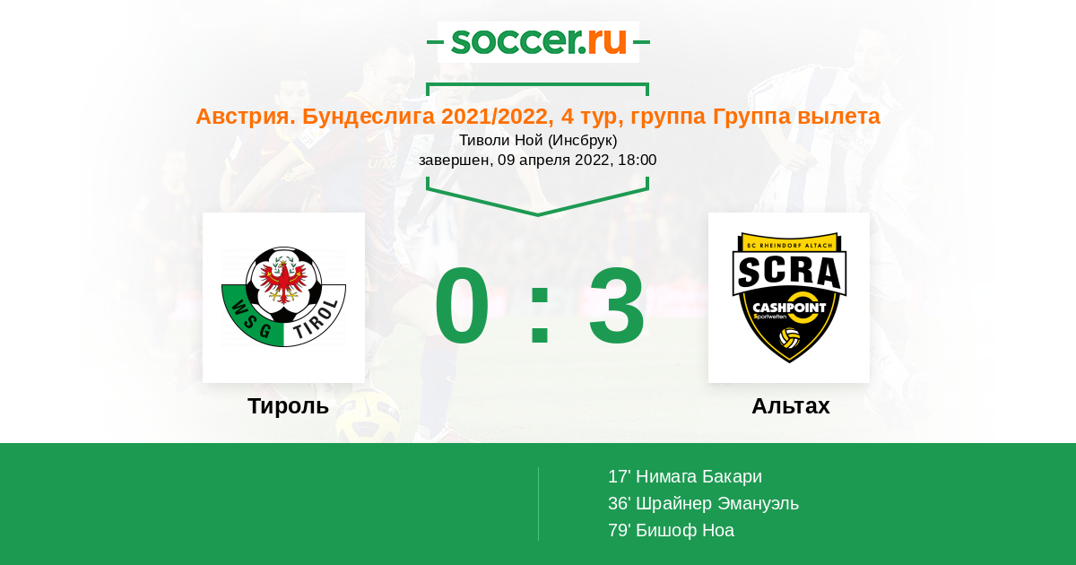 17' (0:1) Нимага Бакари (42) (Гаудино Джанлука (55))