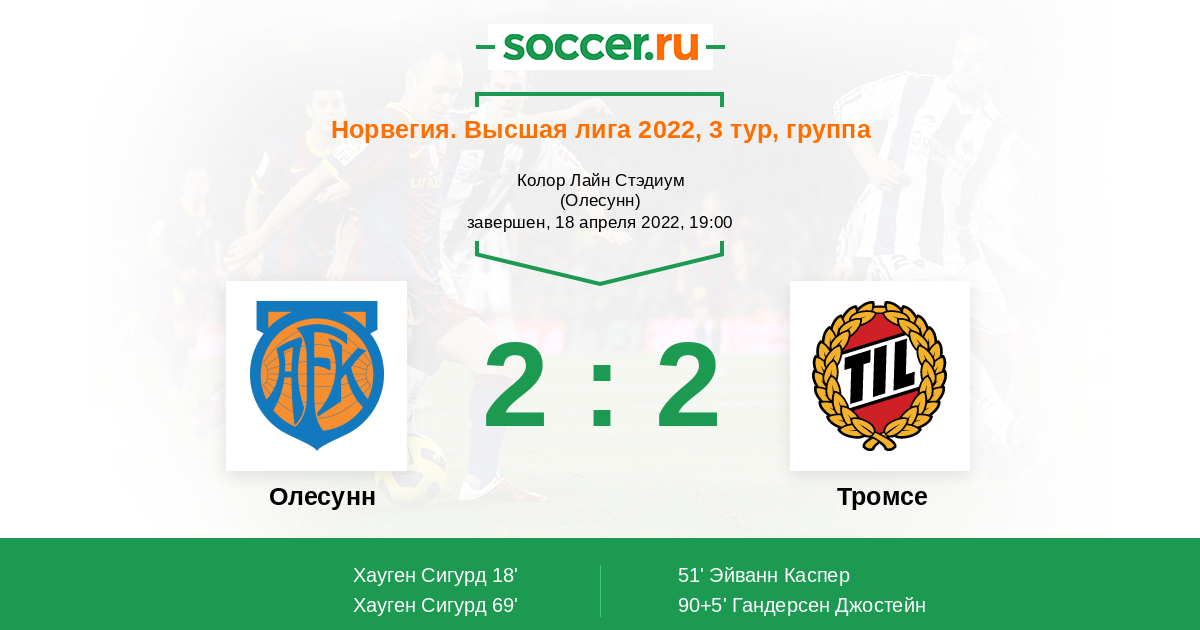 69' (2:1) Хауген Сигурд (22) (Хауген Фредрик (8))
