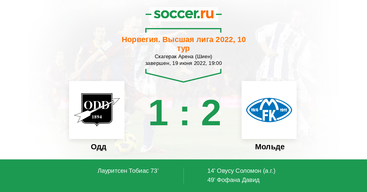 73' (1:2) Лауритсен Тобиас (20) (Баккай Йосеф (3))
