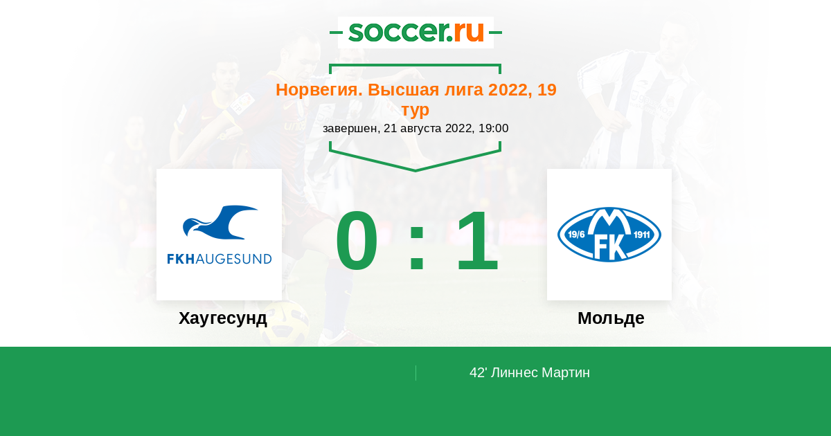 42' (0:1) Линнес Мартин (21) (Фофана Давид (9))