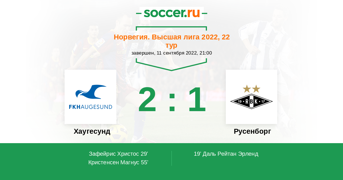 19' (0:1) Даль Рейтан Эрленд (2) (Корник Лео (32))