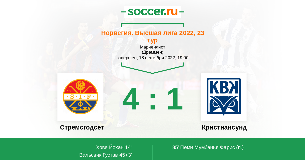 77' (4:0) Фрайдэй Имо Фред (9) (Стенвик Хальдор (7))