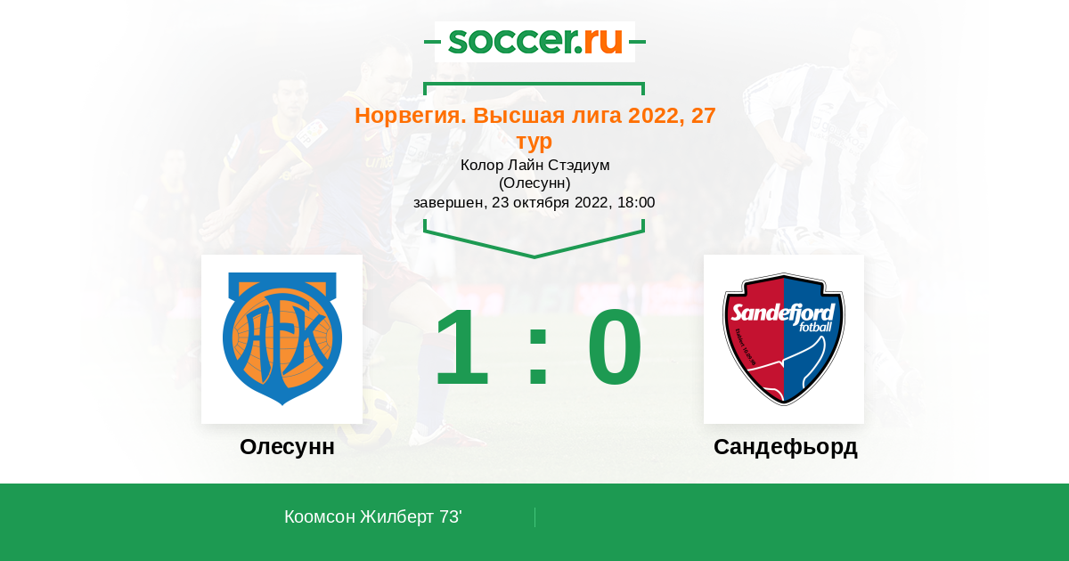 73' (1:0) Коомсон Жилберт (23) (Одемарксбаккен Кристоффер (15))