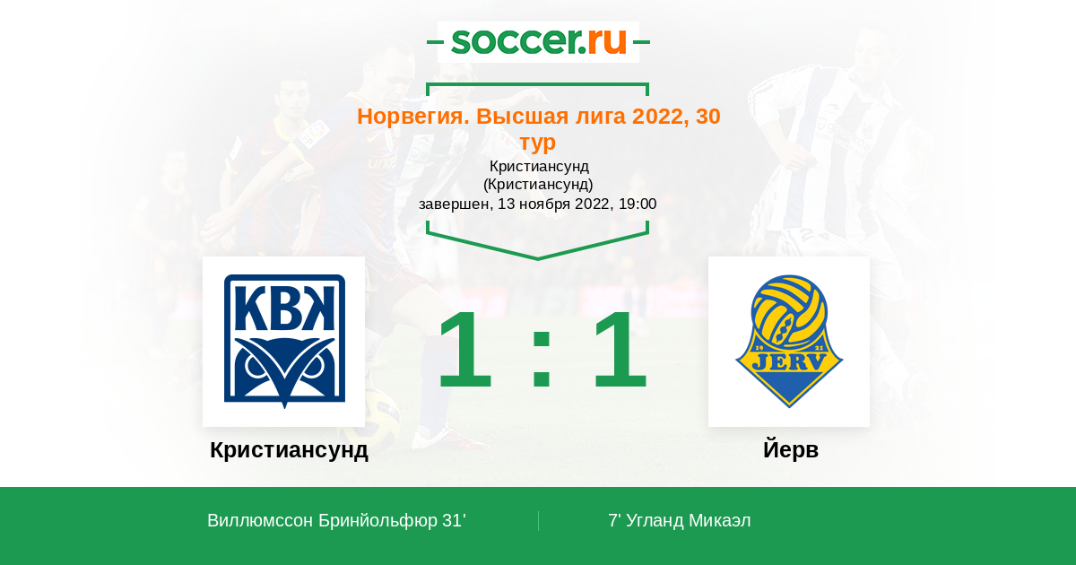 31' (1:1) Виллюмссон Бринйольфюр (17) (Хопмарк Андреас (6))