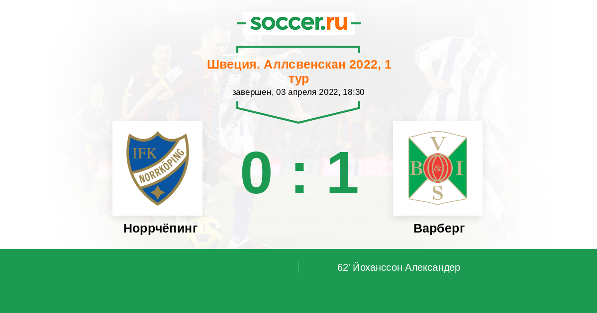 62' (0:1) Йоханссон Александер (16) (Лильебак Антон (23))
