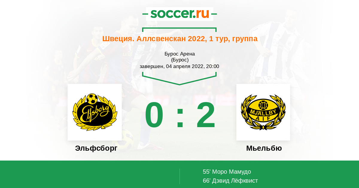 66' (0:2) Дэвид Лёфквист (12) (Моро Мамудо (10))
