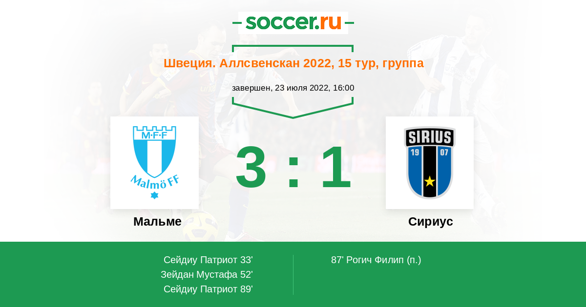 89' (3:1) Сейдиу Патриот (36) (Зейдан Мустафа (20))