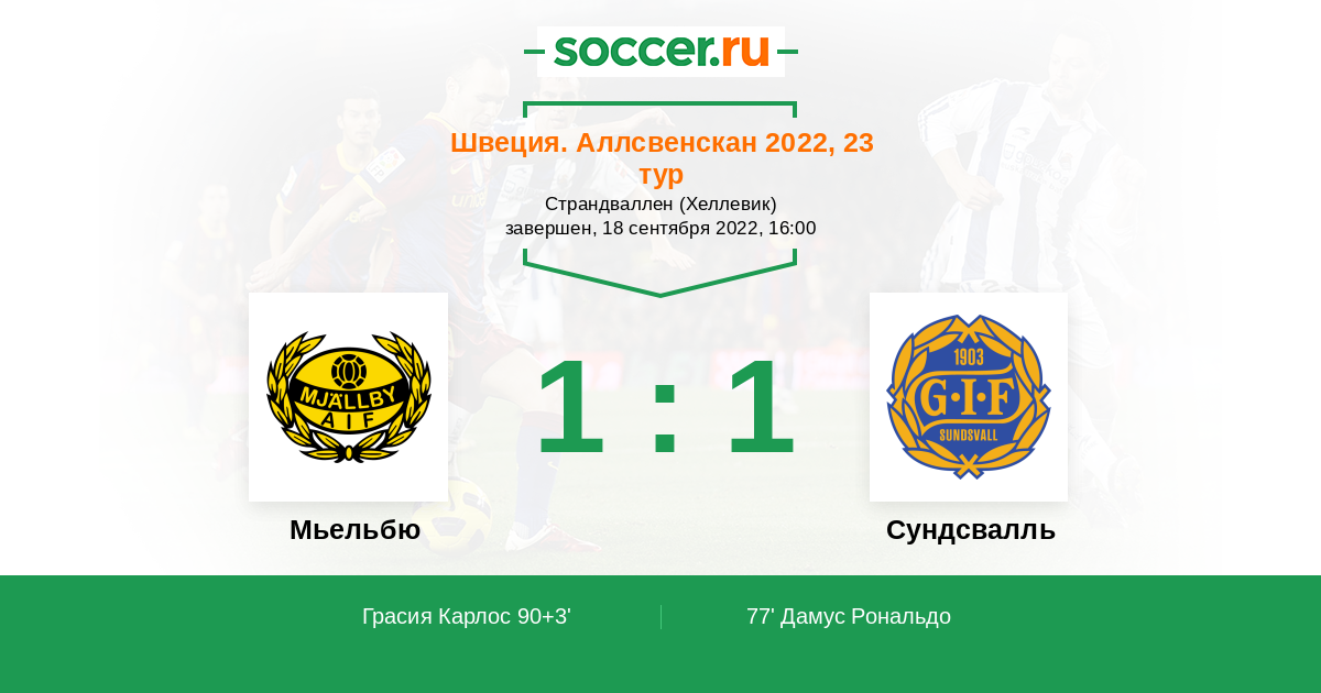 90+3' (1:1) Грасия Карлос (17) (Бергстрем Якоб (16))