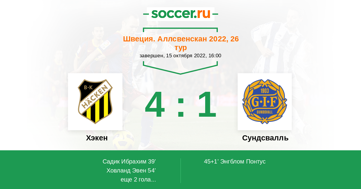 45+1' (1:1) Энгблом Понтус (21) (Андерссон Эрик (7))
