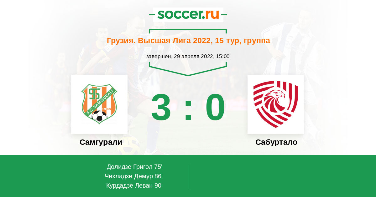 86' (2:0) Чихладзе Демур (10) (Буржанадзе Шалва (25))