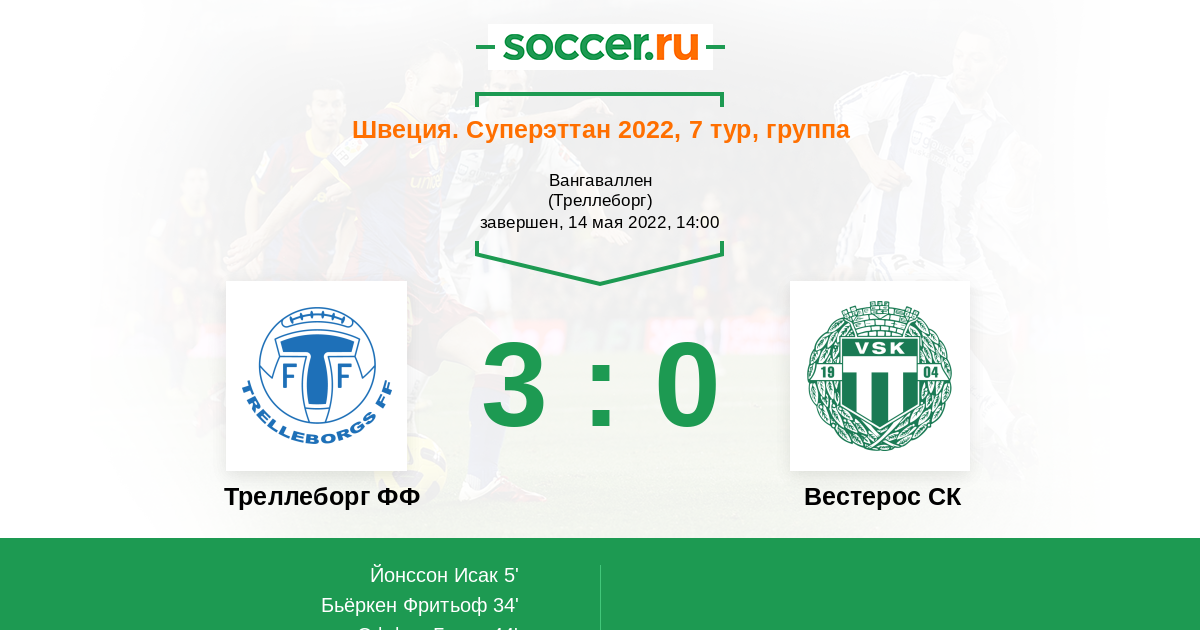 5' (1:0) Йонссон Исак (17) (Бломберг Йонас (22))