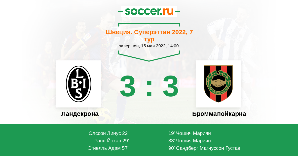 90' (3:3) Сандберг Магнуссон Густав (6)