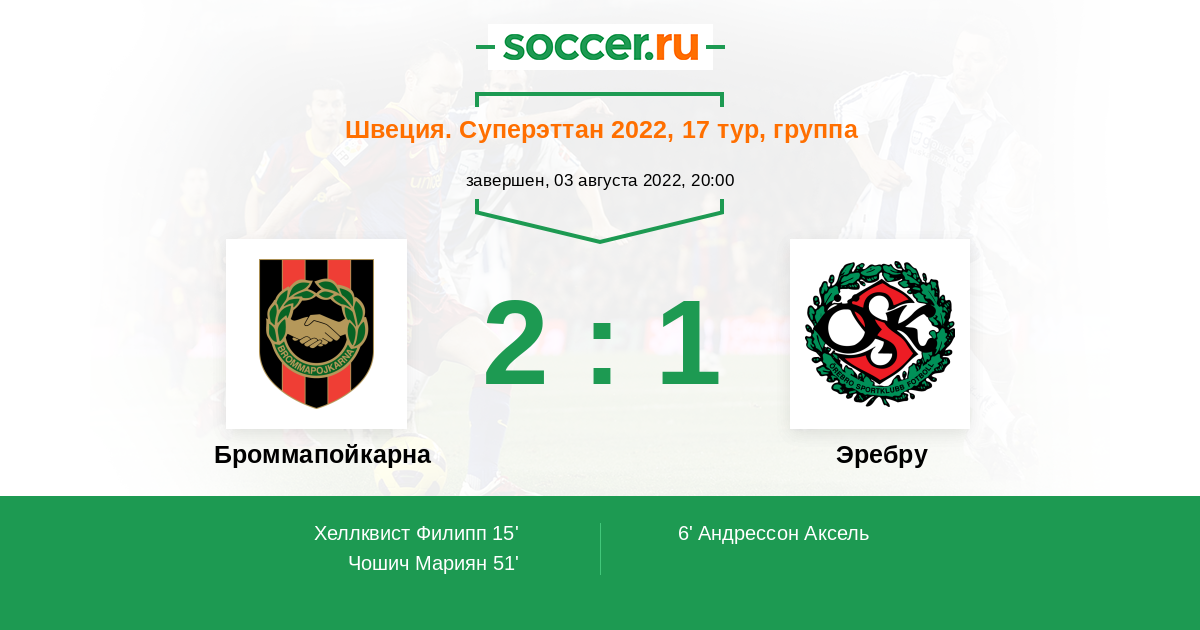 51' (2:1) Чошич Мариян (10) (Хольм Самуэль (15))