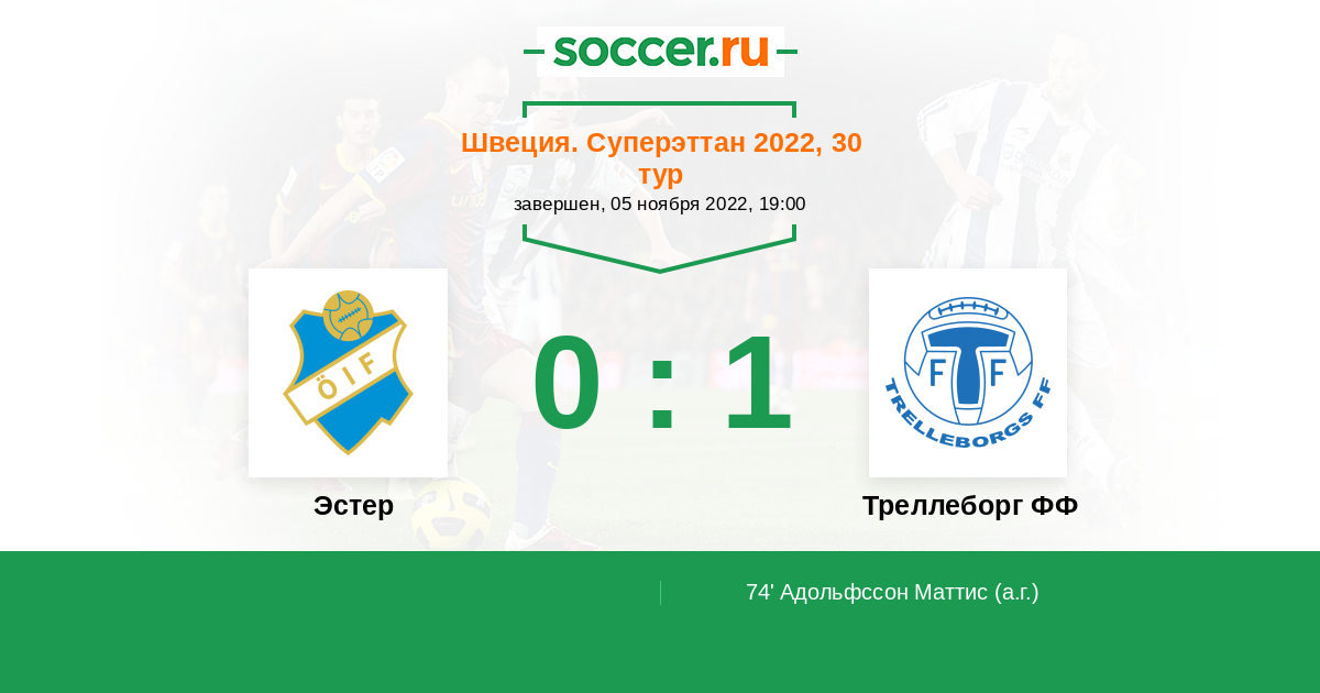 74' (0:1) Автогол Адольфссон Маттис (5)