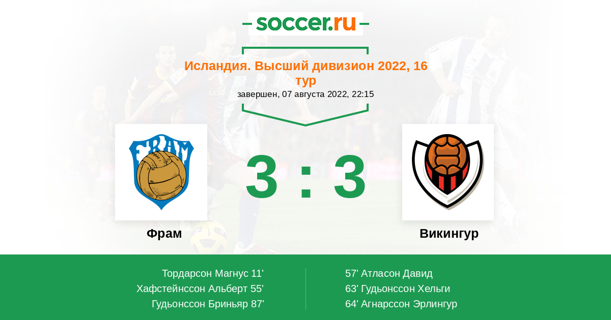 Запасные: 7 Фред Сараива (с 66'), 20 Геирссон Труггви (с 66'), 9 Гудйонссон Торир (с 89'), 5 Тшиембе Дельфин, 10 Гуннарссон Орри, 12 Ханнессон Стефан, 16 Адалстейнссон Арнор Дади
