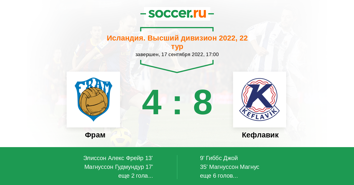 Запасные: 4 Хафстейнссон Альберт (с 63'), 11 Ормарссон Алмарр (с 63'), 13 Йендис Хесус (с 69'), 24 Тордарсон Магнус (с 82'), 9 Гудйонссон Торир, 12 Ханнессон Стефан, 20 Геирссон Труггви