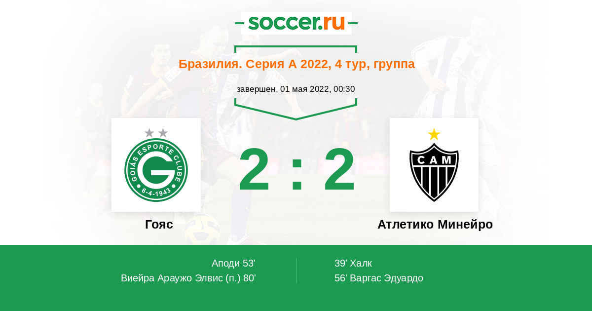 53' (1:1) Аподи (22) (Виейра Араужо Элвис (10))